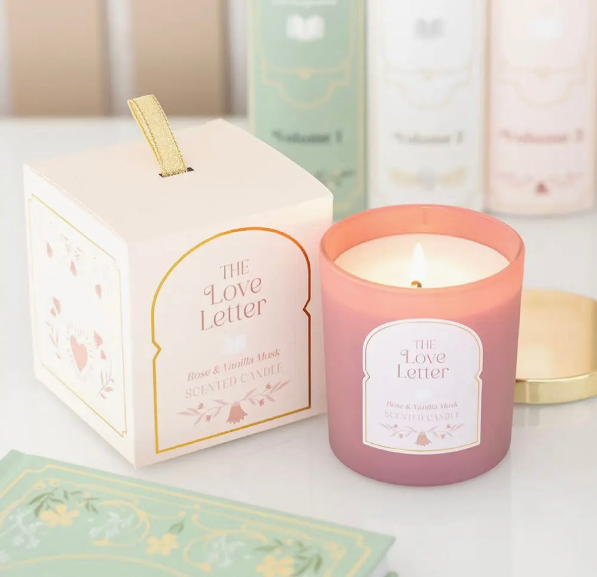 Create a cosy and romantic reading nook with this The Love Letter Rose & Vanilla Musk Candle.